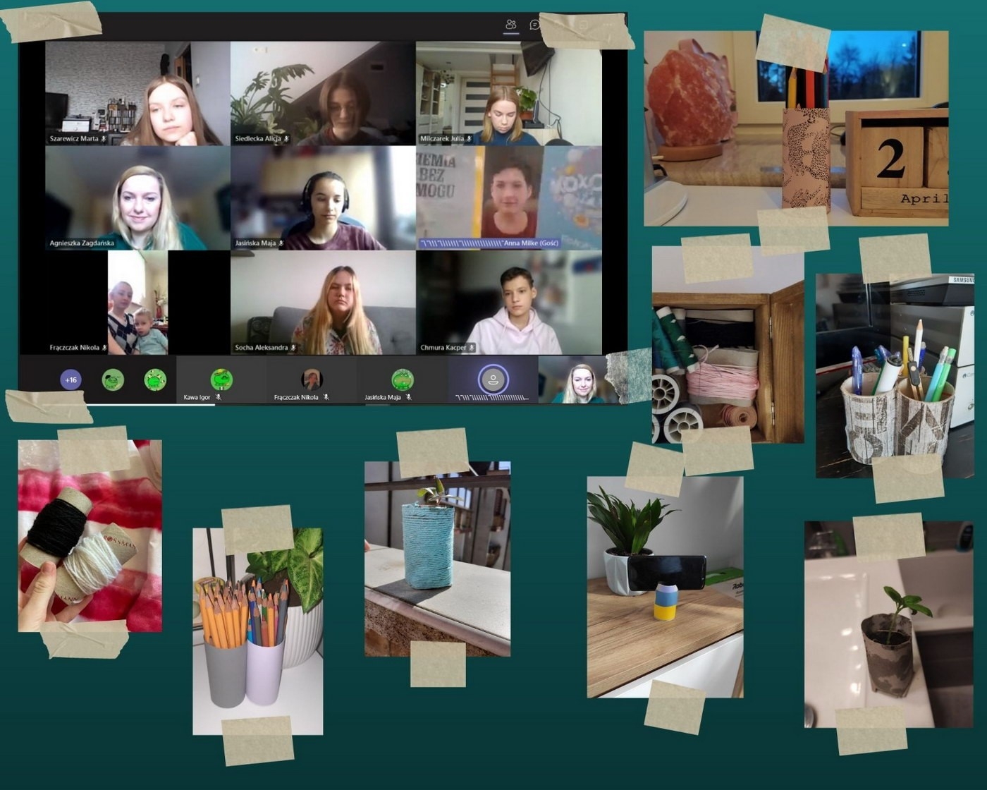 Rozmawialiśmy o roli wdrażania działań proekologicznych przez duże przedsiębiorstwa i zakłady w różnych branżach przemysłowych dla naszego środowiska. Siódmo- i ósmoklasiści również mieli okazję do wykazania się kreatywnością. Spośród możliwości zaprezentowanych przez panią Anię wykorzystania papierowej tutki. Powstały pojemniki na kredki, doniczki, stojaki na telefony czy szpulki na nici.